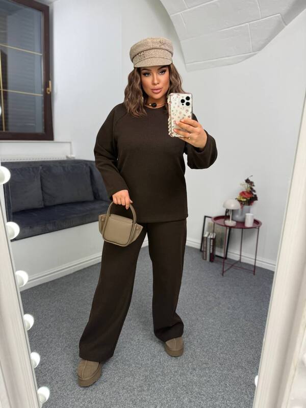 Костюм штани талія на резинці, з двома кишенями. Кофта рукав реглан. Тканина приємна до тіла, м'яка, тепла, не колеться.