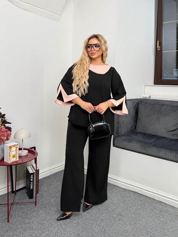 Комплект двійка, асиметрична кофтинка зі вставками пудрового кольору, з боків розрізи на рукавах та по низу кофти.