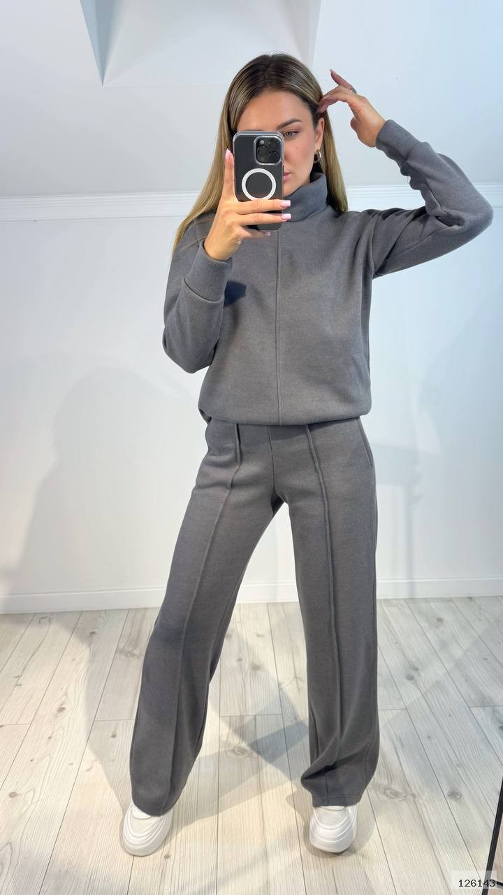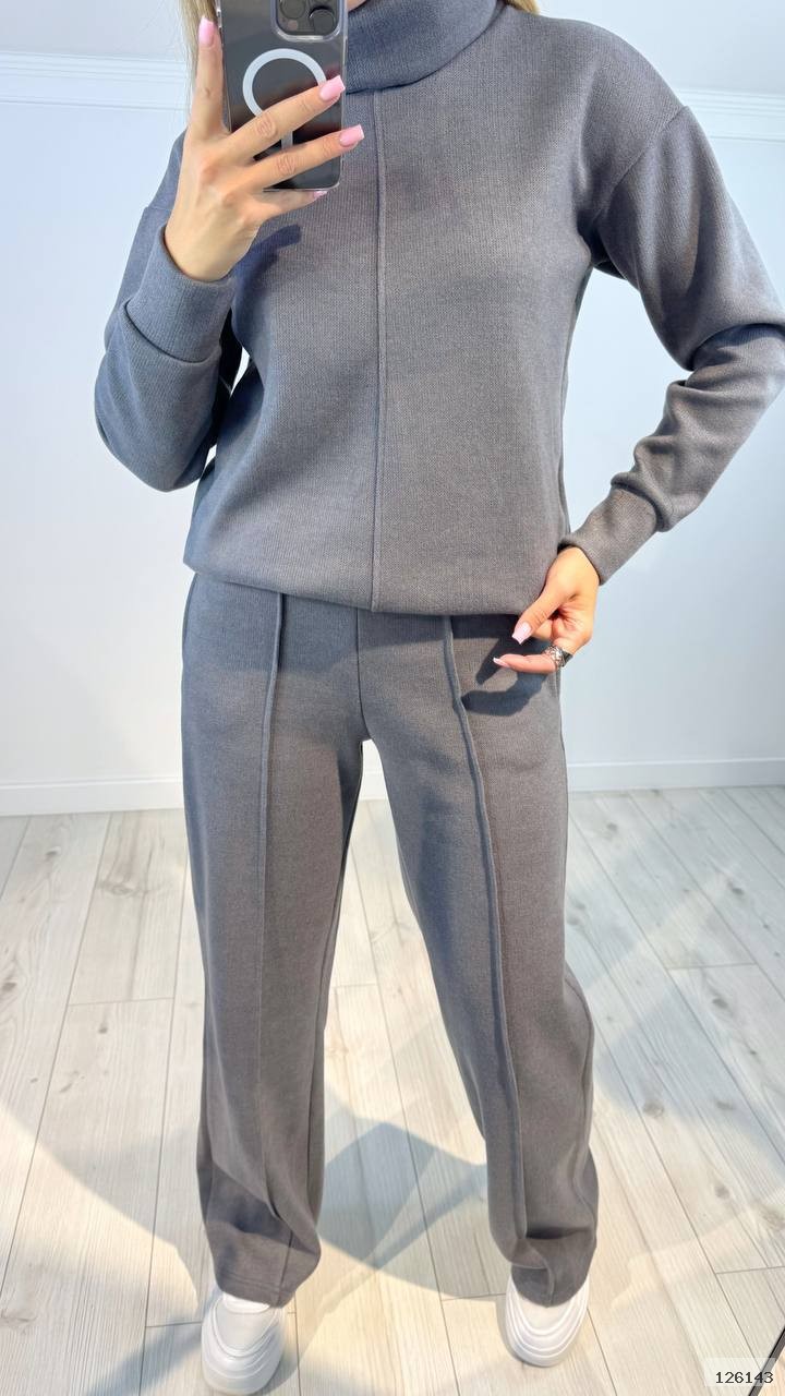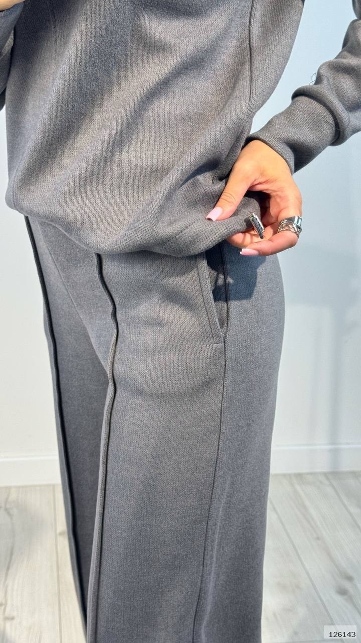 Костюм кофта прямого крою, низ затягується на резиночку з фіксатором, горловина хомут, штани посадка середня, вільного крою, з карманами, талія на резинці