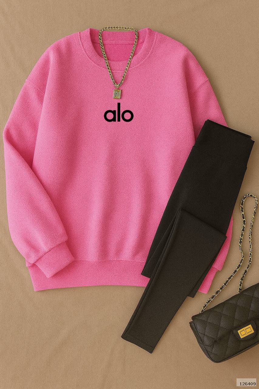 Модний комплект із м’якої, приємної на дотик тканини: оверсайз світшот + еластичні лосини. Світшот має універсальний вільний фасон, зручні манжети та актуальний лаконічний принт. Лосини щільні, добре тягнуться та підкреслюють силует, забезпечуючи максимальний комфорт у русі.