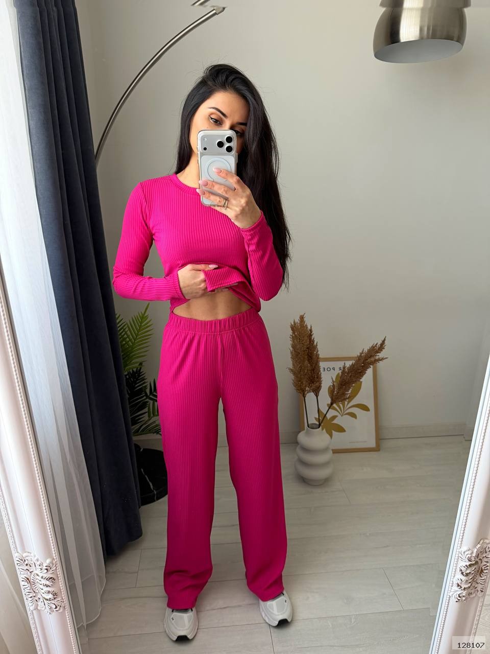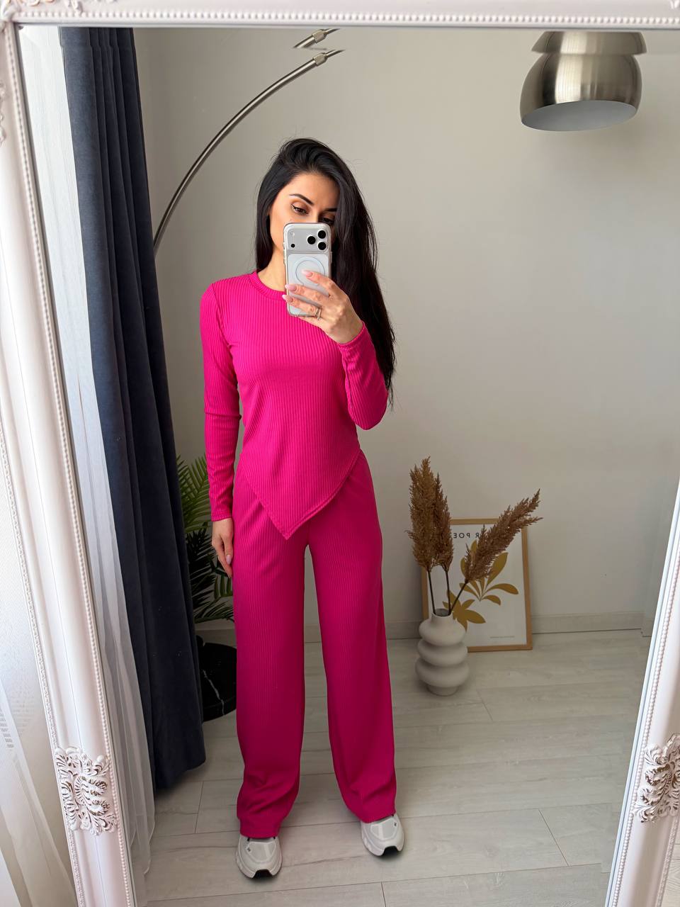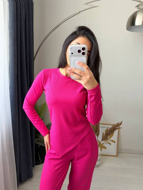 Стильний костюм двійка з рубчику. Асиметрична кофта додає цікавості