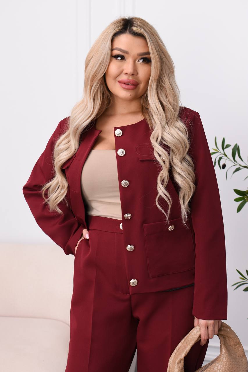 Класичний костюм на підкладці. Піджак на ґудзиках, кармани накладні робочі, штанці по низу палаццо. Ідеальний варіант як офісний look, святково-діловий або прогулянковий. Гарно сідає по фігурі.