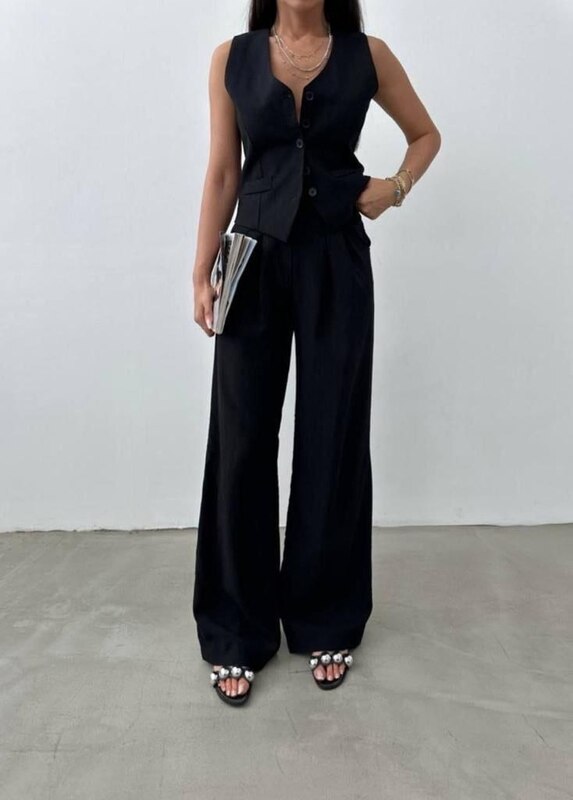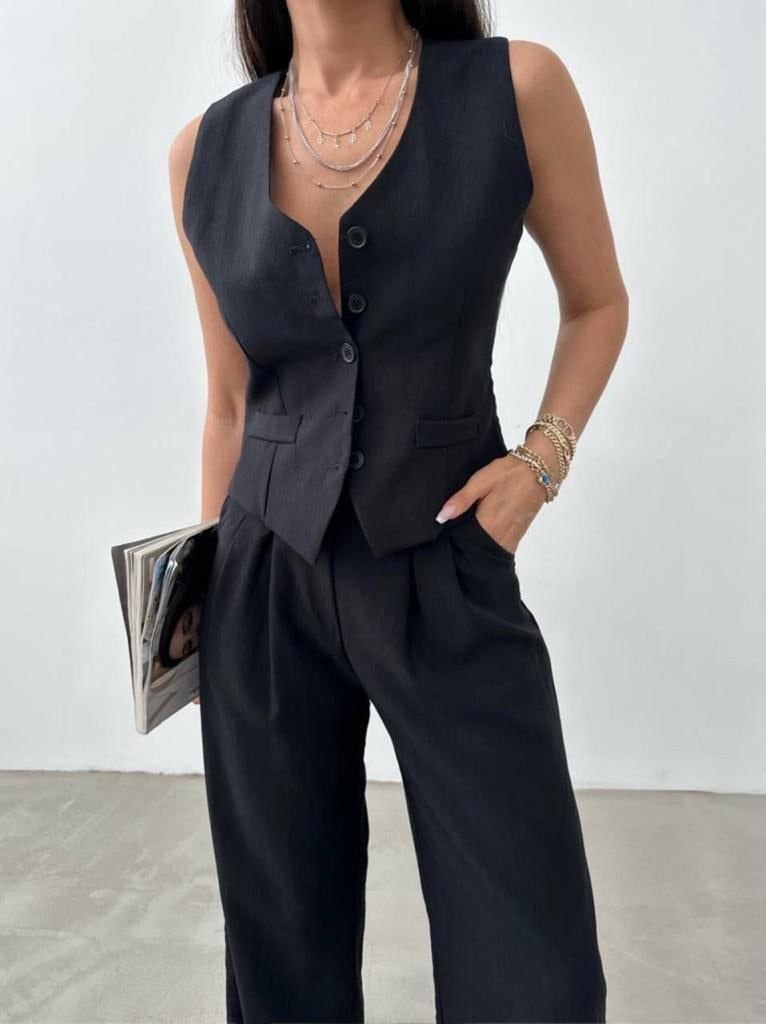 Жилет із витонченими кишенями-обманками додає шарму та елегантності.