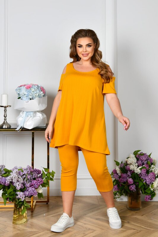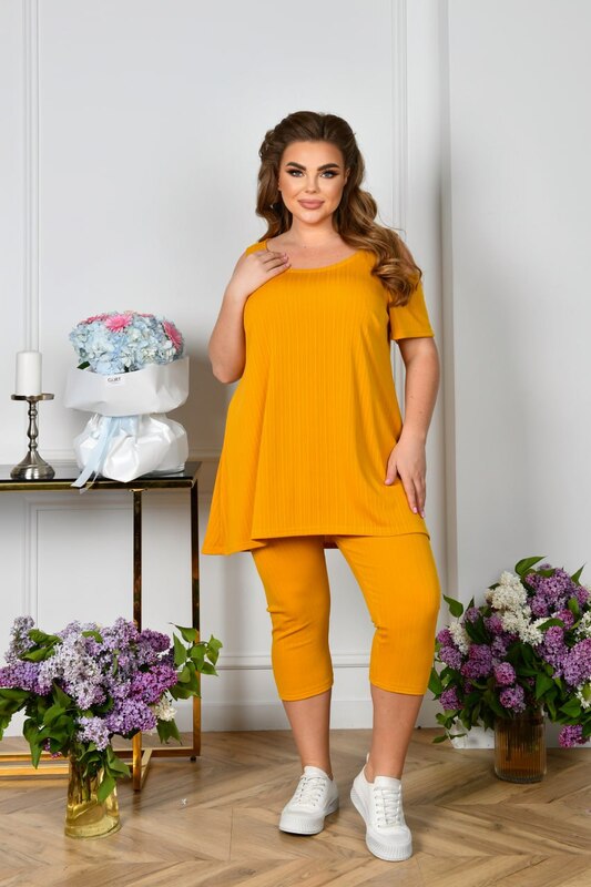 Стильний повсякденний костюм для прогулянок із трикотажу в рубчик (розтяжність висока).