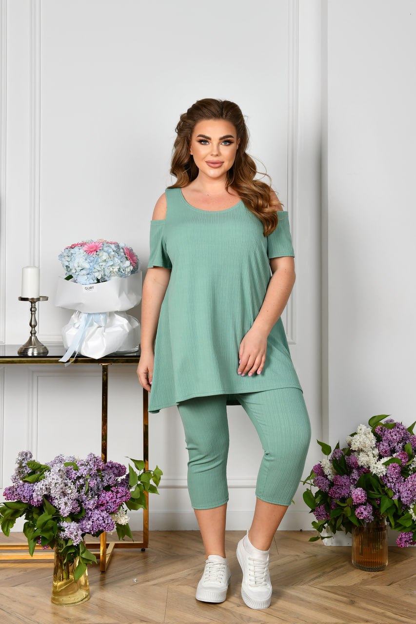 Стильний повсякденний костюм для прогулянок із трикотажу в рубчик (розтяжність висока).