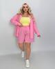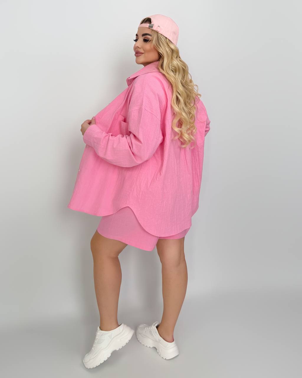 Костюм із жатого льону: сорочка на ґудзиках з карманом + шорти з кишенями у бічних швах з посадкою вище середнього на еластичній гумці та куліскою на поясі