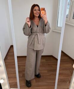Ніжний, м’який кашемір дарує відчуття тепла та затишку, а продуманий фасон додає жіночності й вишуканості. Комплект складається зі штанів та кардигана вільного крою, які можна носити разом або комбінувати з іншими речами гардероба.