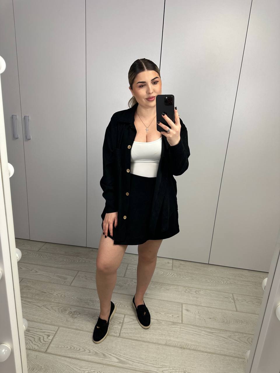 Стильний костюм двійка, який складається з сорочки і спідниці-шорти. Трендове поєднання, яке можна носити як разом, так і окремо