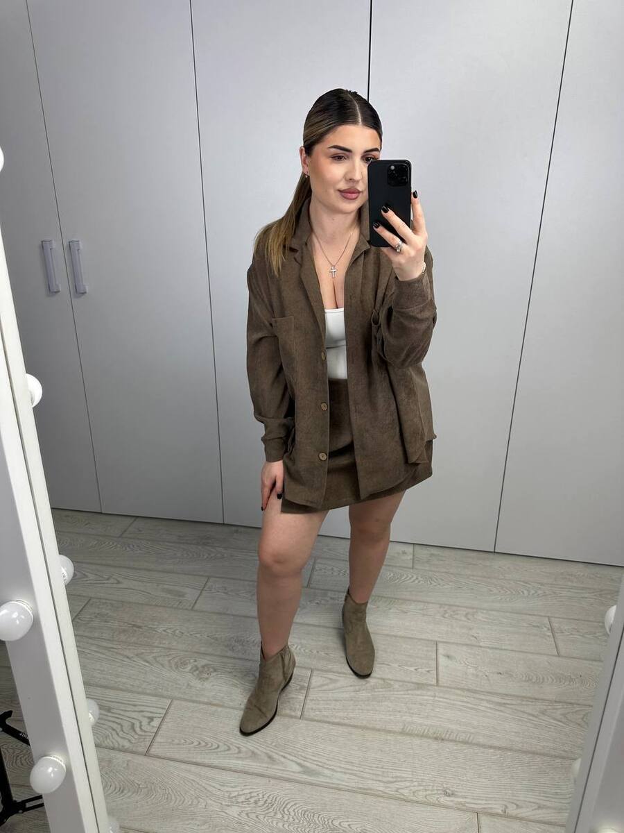 Стильний костюм двійка, який складається з сорочки і спідниці-шорти. Трендове поєднання, яке можна носити як разом, так і окремо