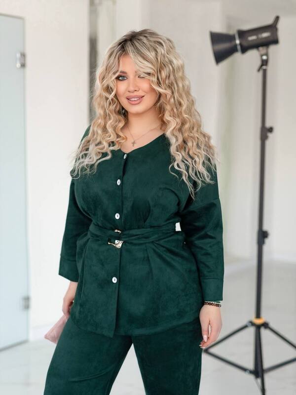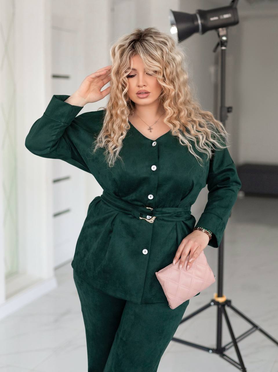 Стильний комплект для прогулянок.Ідеально лягає по фігурі,створюючи благородний силует.Костюм у якому ти виглядаєш стильно,дорого.Рукав укорочений,стильна пряжка на поясі