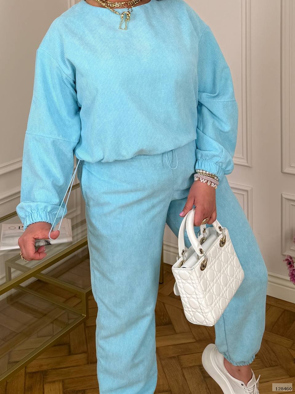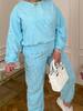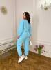 Костюм кофта вільного крою, низ на резинці з фіксаторами, рукав манжет на резинці. Штани талія на резинці з фіксатором, низ штанів на резинці, з двома кишенями.