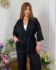 стильний прогулянковий костюм зі льону «Бохо»: вільний кардиган під пояс + Штани з високою посадкою на гумці, з кишенями у бічних швах та куліскою на поясі.