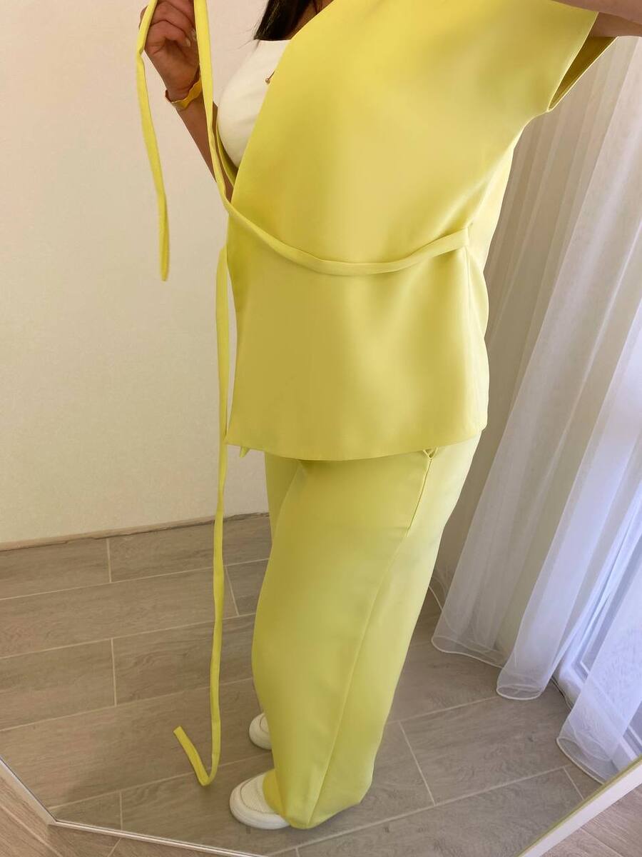 Класичний стильной костюм із брюками та жилетом. Жилет із підкладом, на запах, фіксується на канати.