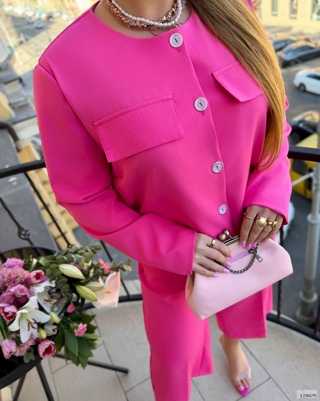 Класичний костюм на підкладці. Піджак на ґудзиках, кармани клапани, в плечах паралонові під плечники. Штанці кюлоти Ідеальний варіант як офісний look, святково-діловий або прогулянковий. Гарно сідає по фігурі.