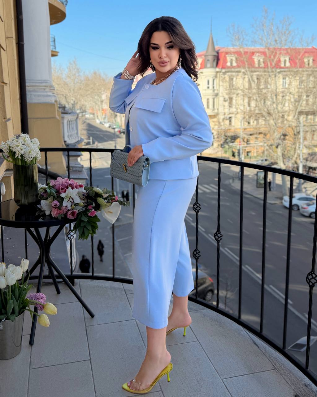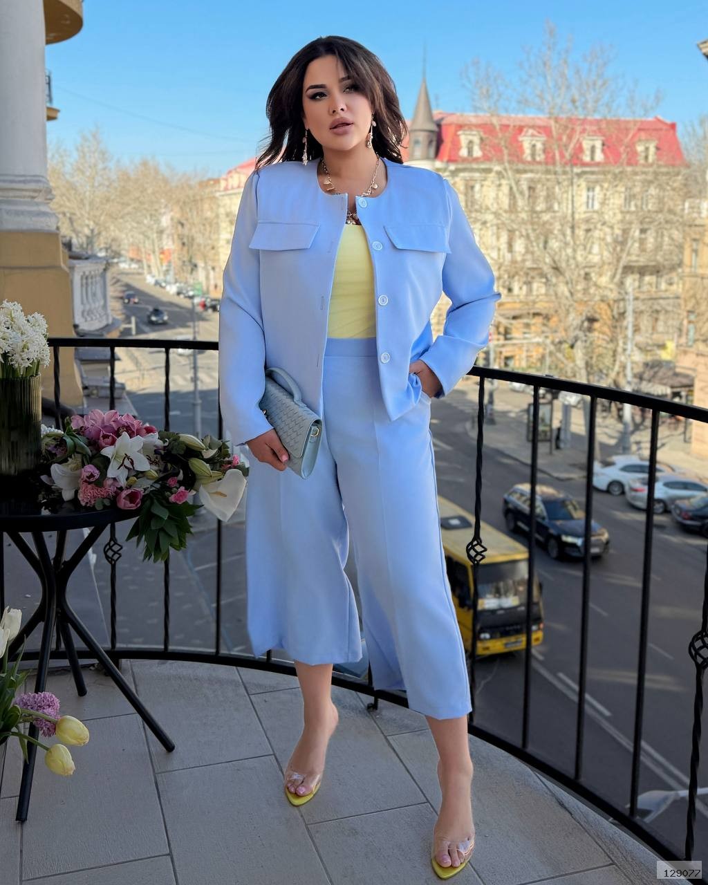 Класичний костюм на підкладці. Піджак на ґудзиках, кармани клапани, в плечах паралонові під плечники. Штанці кюлоти Ідеальний варіант як офісний look, святково-діловий або прогулянковий. Гарно сідає по фігурі.