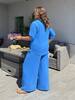 Штани палаццо вільного крою мають бічні кишені та резинку на талії, футболка вільного крою декорована ґудзиками, довжина рукава регулюється