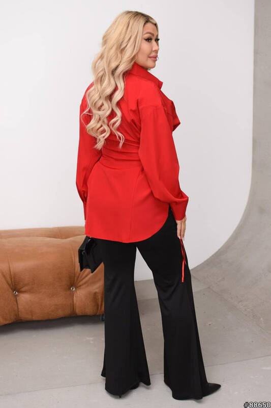 Блуза з софту с корегуючими затяжками збоку ,підкреслює талію.Трендові лосини з високою посадкою.