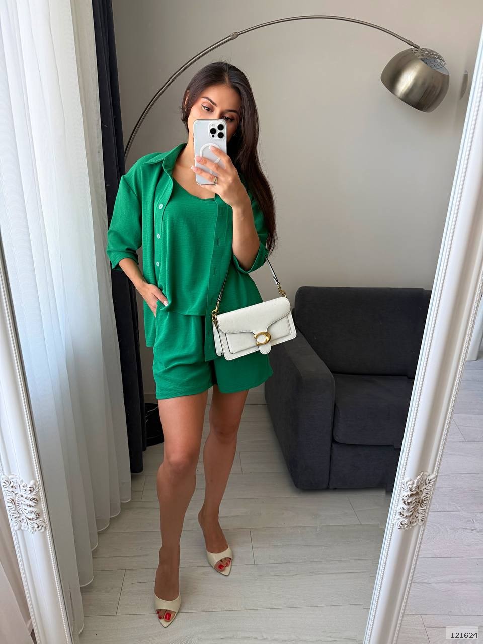 Літній легенький костюм трійка, який складається з шорт, майки і сорочки