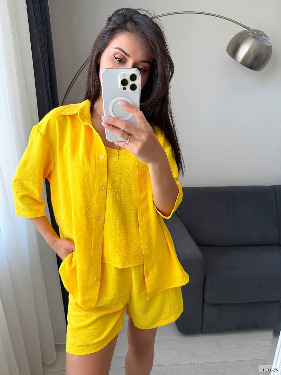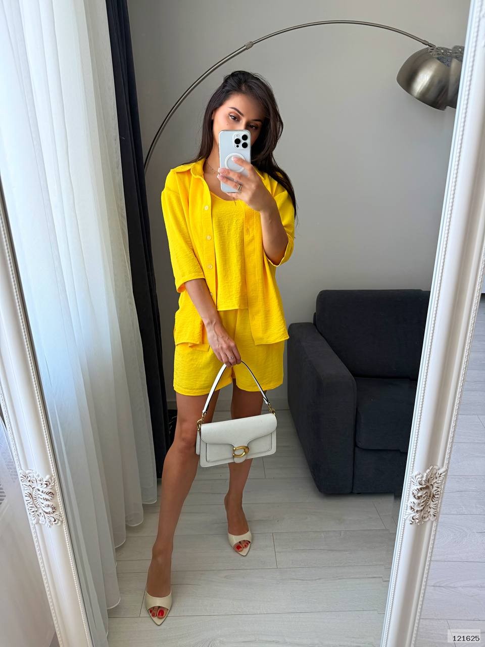 Літній легенький костюм трійка, який складається з шорт, майки і сорочки