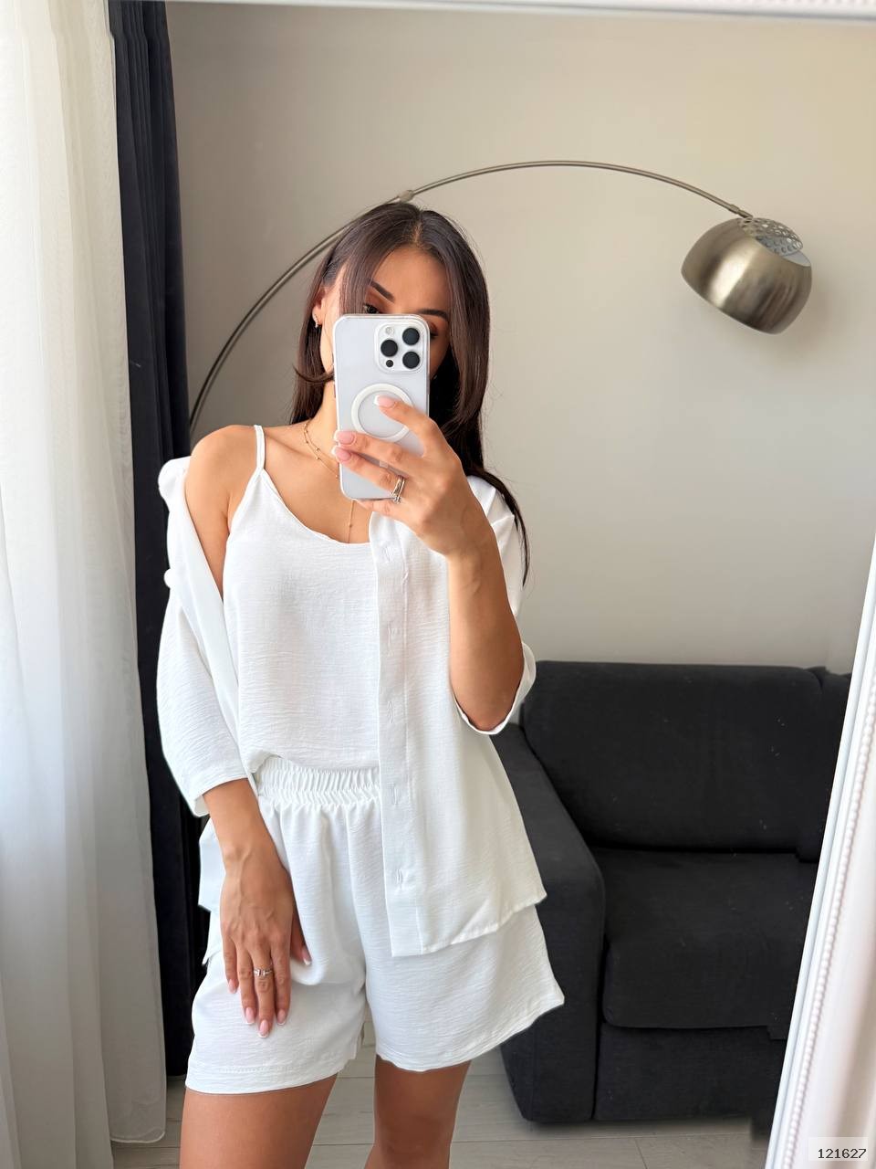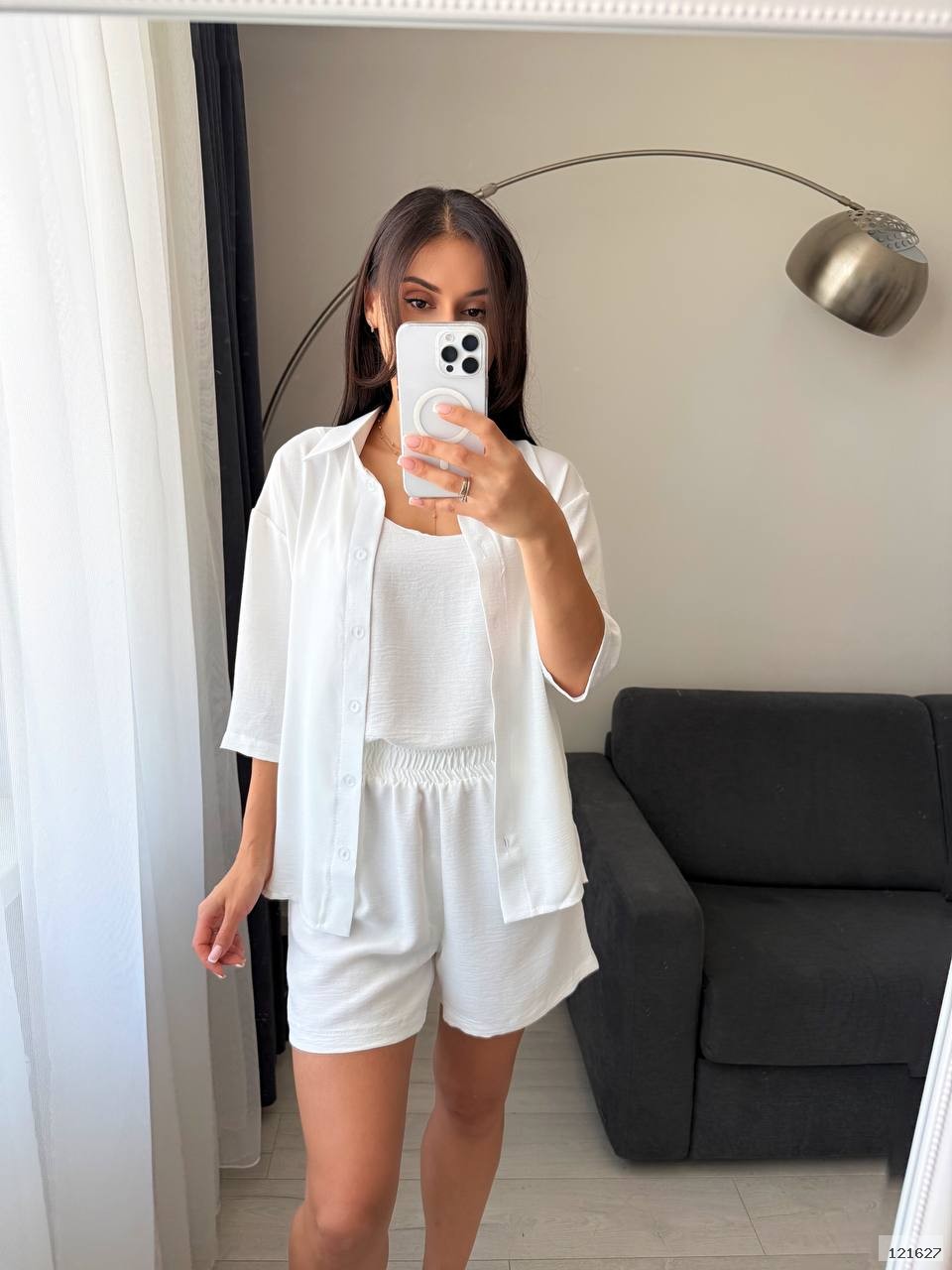 Літній легенький костюм трійка, який складається з шорт, майки і сорочки