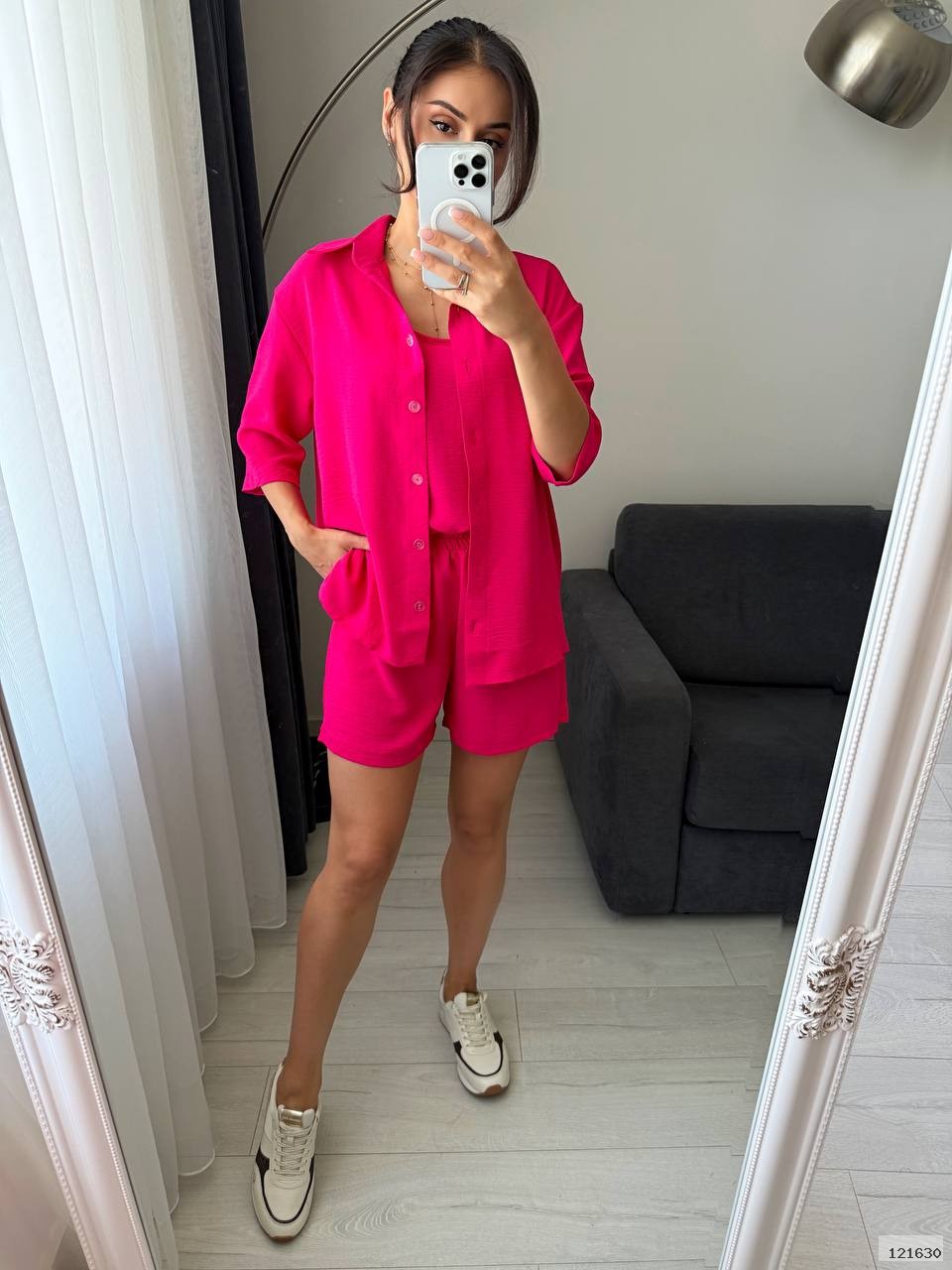 Літній легенький костюм трійка, який складається з шорт, майки і сорочки