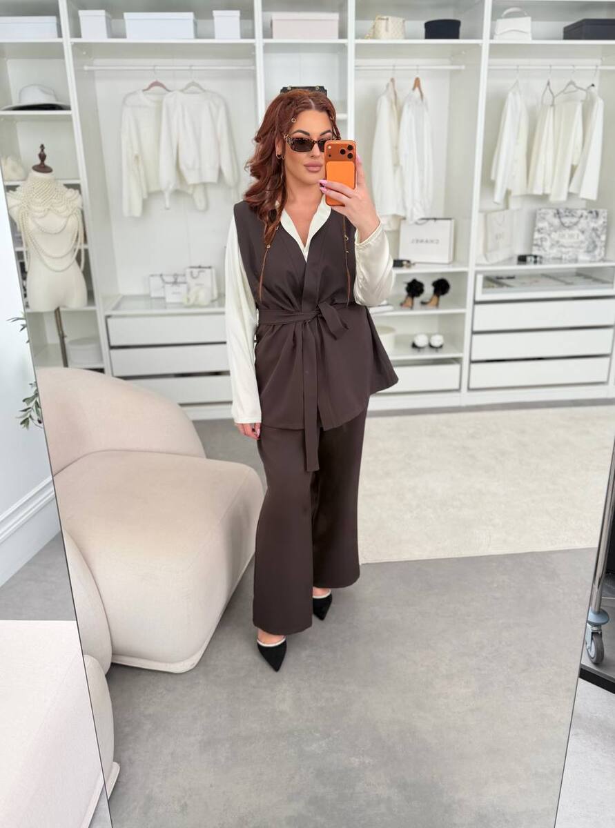 Главная- Женская одежда XL+ (Plus Size)- Костюмы XL+- Брючні костюми XL+-Костюм трійка 127969