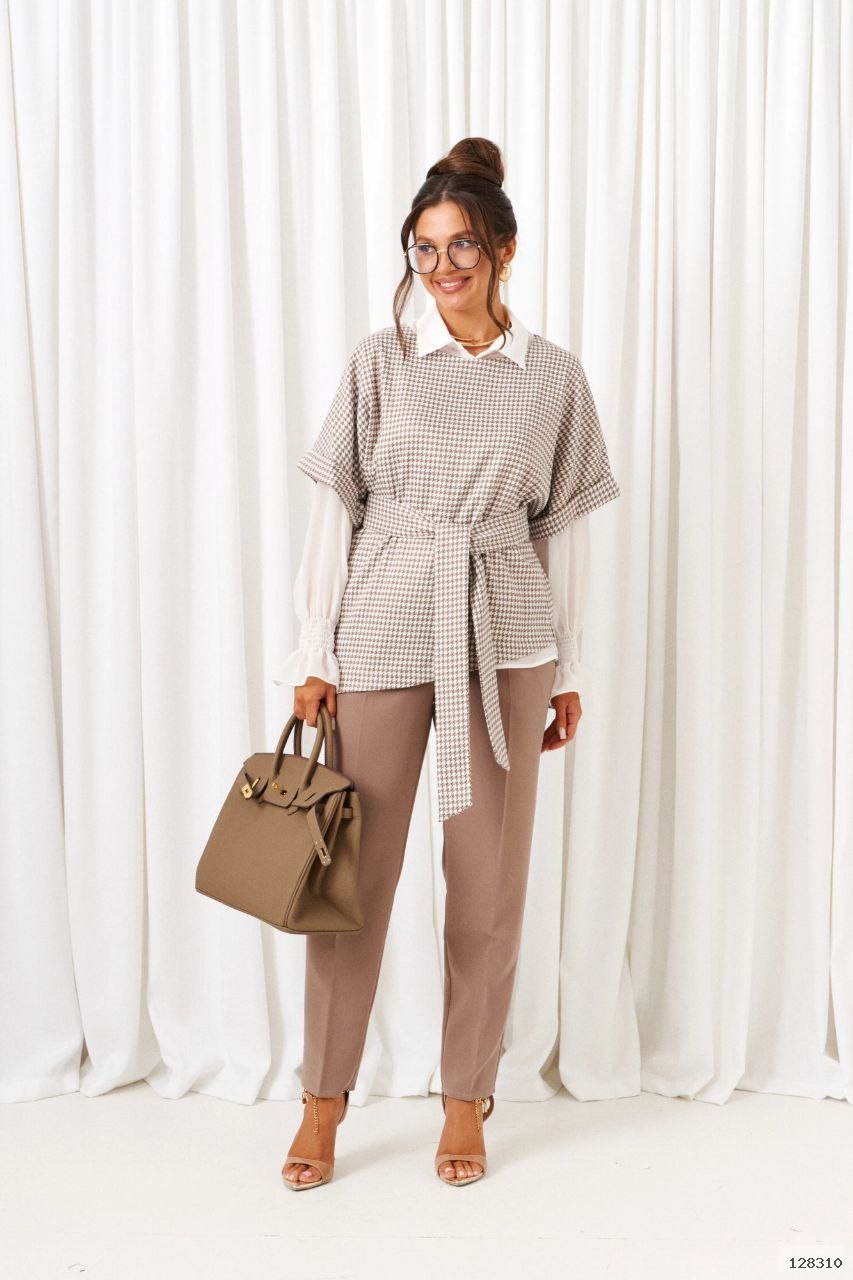 Главная- Женская одежда XL+ (Plus Size)- Костюмы XL+- Брючні костюми XL+-Костюм трійка 128310