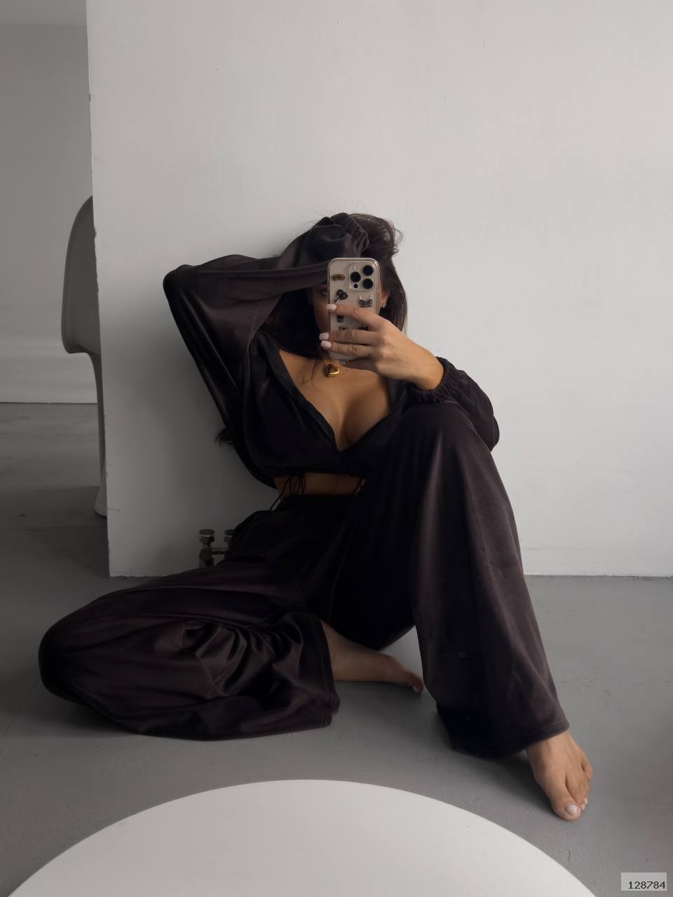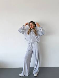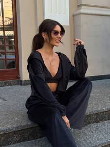 Костюм-трійка, що поєднує комфорт і трендовий вигляд. Легкий бра-топ, вільні штани та кофта на замку створюють ідеальний сет на кожен день. Велюр ніжний на дотик і виглядає дорого, а фасон підкреслює фігуру та водночас дарує свободу рухів.