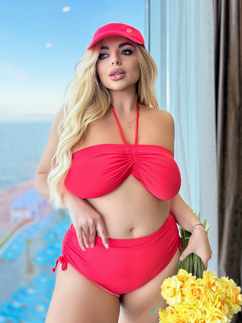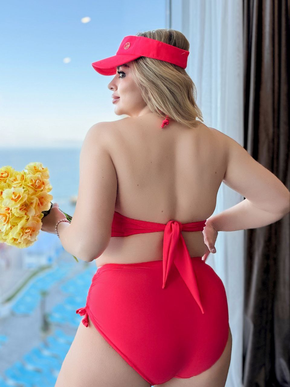 Роздільний купальник Плавки + Ліф, Плавки завищена талія, з боків є зав'язки для стяжки, Ліф із зав'язками ззаду, зі вставною чашкою, та зав'язкою посередині, зав'язується за шию.