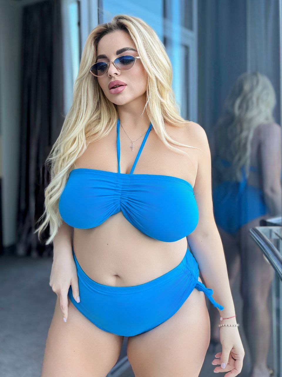 Роздільний купальник Плавки + Ліф, Плавки завищена талія, з боків є зав'язки для стяжки, Ліф із зав'язками ззаду, зі вставною чашкою, та зав'язкою посередині, зав'язується за шию.