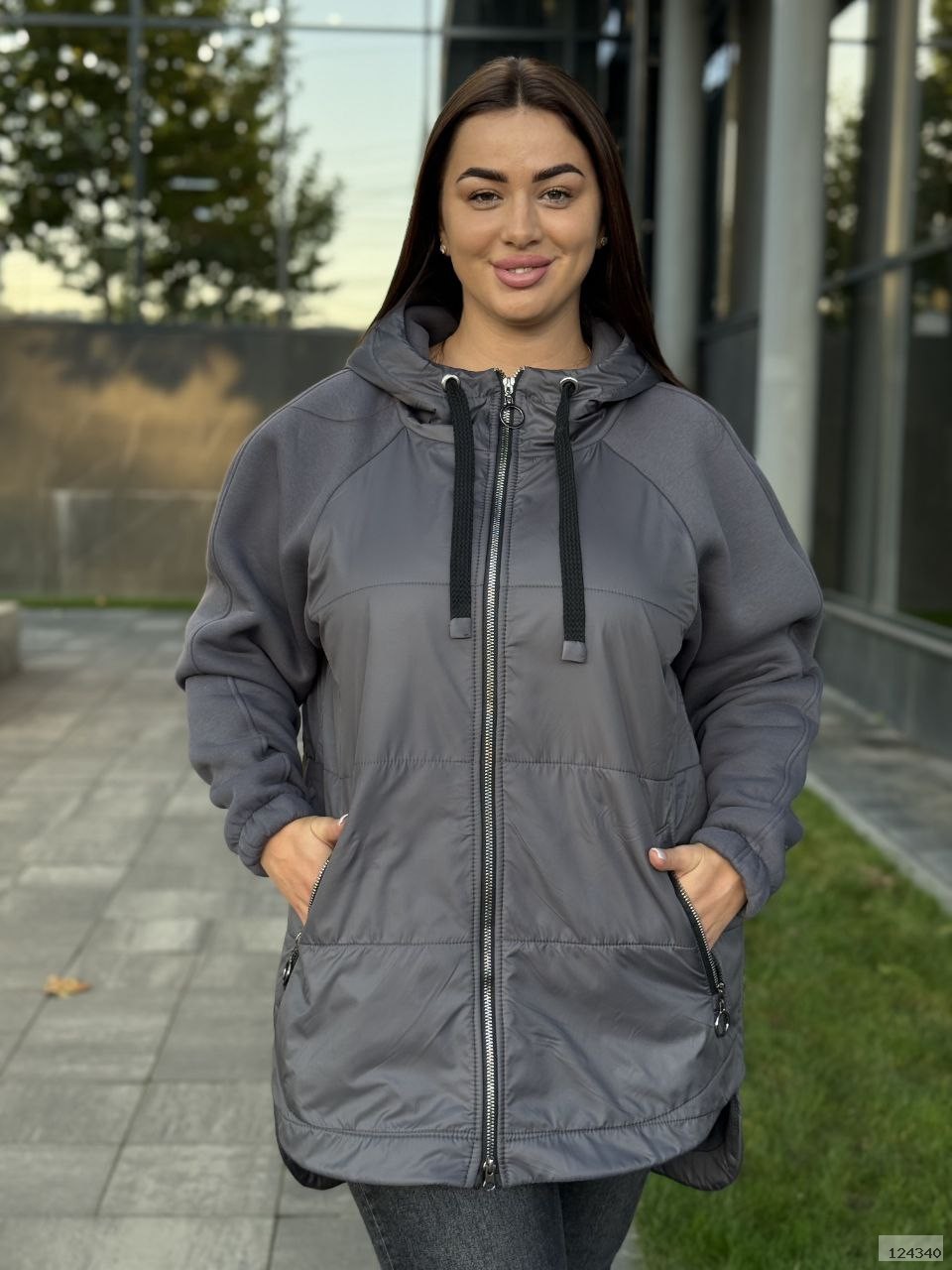 Стильній та комфортний подовжений кардиган прямого крою, з капюшоном та двосторонюю блискавкою.