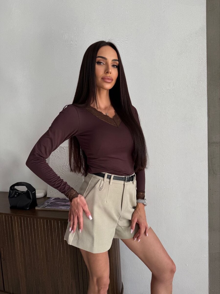 Додайте нотку романтики у свій повсякденний стиль! Лонгслів з витонченим мереживом та V-подібним вирізом – це кохання з першої примірки..
