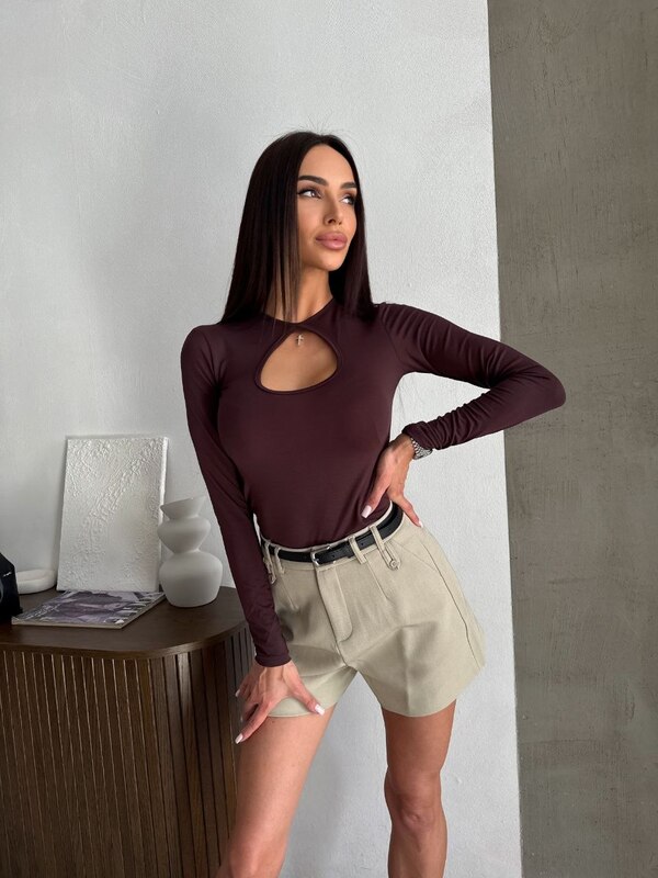 Лонгслів з вирізом у формі краплі, виконаний з м'якої віскози, який ідеально сідає по фігурі. Той випадок, коли одна деталь змінює все.