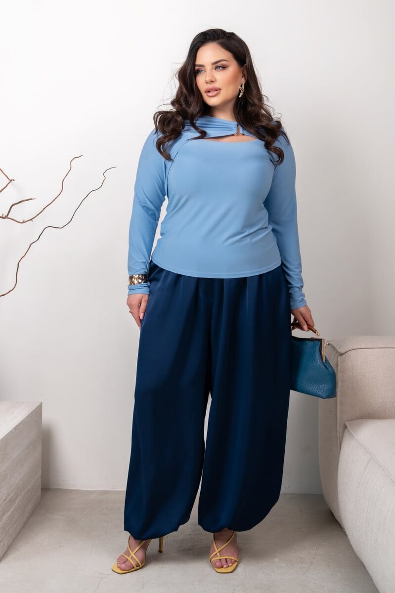 Лонгслів, який виглядає стримано, але з характерним акцентом. Модель виконана у приталеному крої, що красиво підкреслює фігуру та створює акуратний, зібраний силует. Довгі рукави додають практичності та роблять річ універсальною для різних сезонів. Головний акцент — оригінальна драпіровка у верхній частині з декоративним вирізом, яка привертає увагу та додає образу жіночності й виразності. Деталь виглядає стильно й незвично, не перевантажуючи загальний вигляд. Лонгслів легко поєднується з джинсами, спідницями чи класичними брюками — ідеальний варіант для образів, у яких хочеться виглядати цікаво, але без зайвих зусиль.