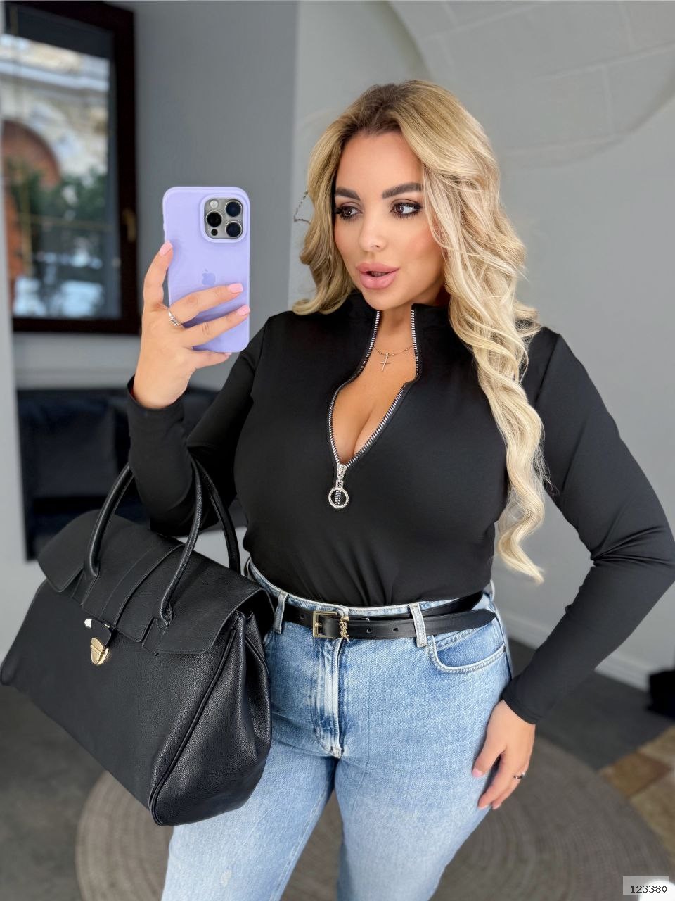 Стильний базовий лонгслів з блискавкою
