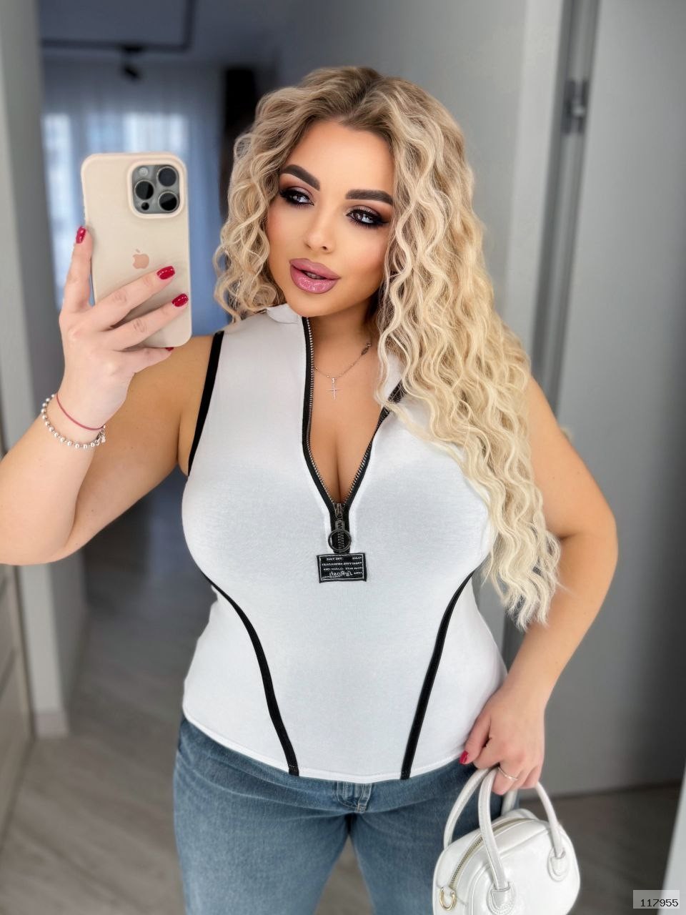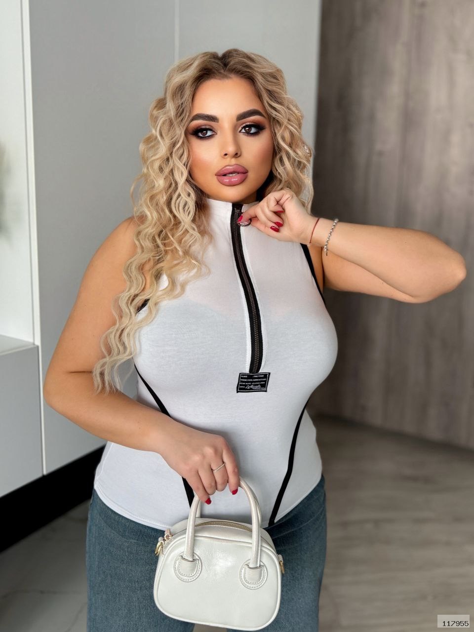 Спокуслива майка з блискавкою. Тканина м'яка дуже эластична, Модель йде по фігурі