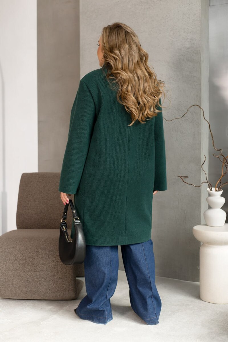 Вільний крій дарує легкість і свободу рухів, а комір-стійка додає образу елегантної стриманості. Стильний декоративний шов підкреслює силует і надає особливого шарму. Довгі рукава створюють гармонійний баланс, а зручні кишеньки та класична застібка на ґудзики роблять пальто не лише красивим, а й неймовірно практичним.