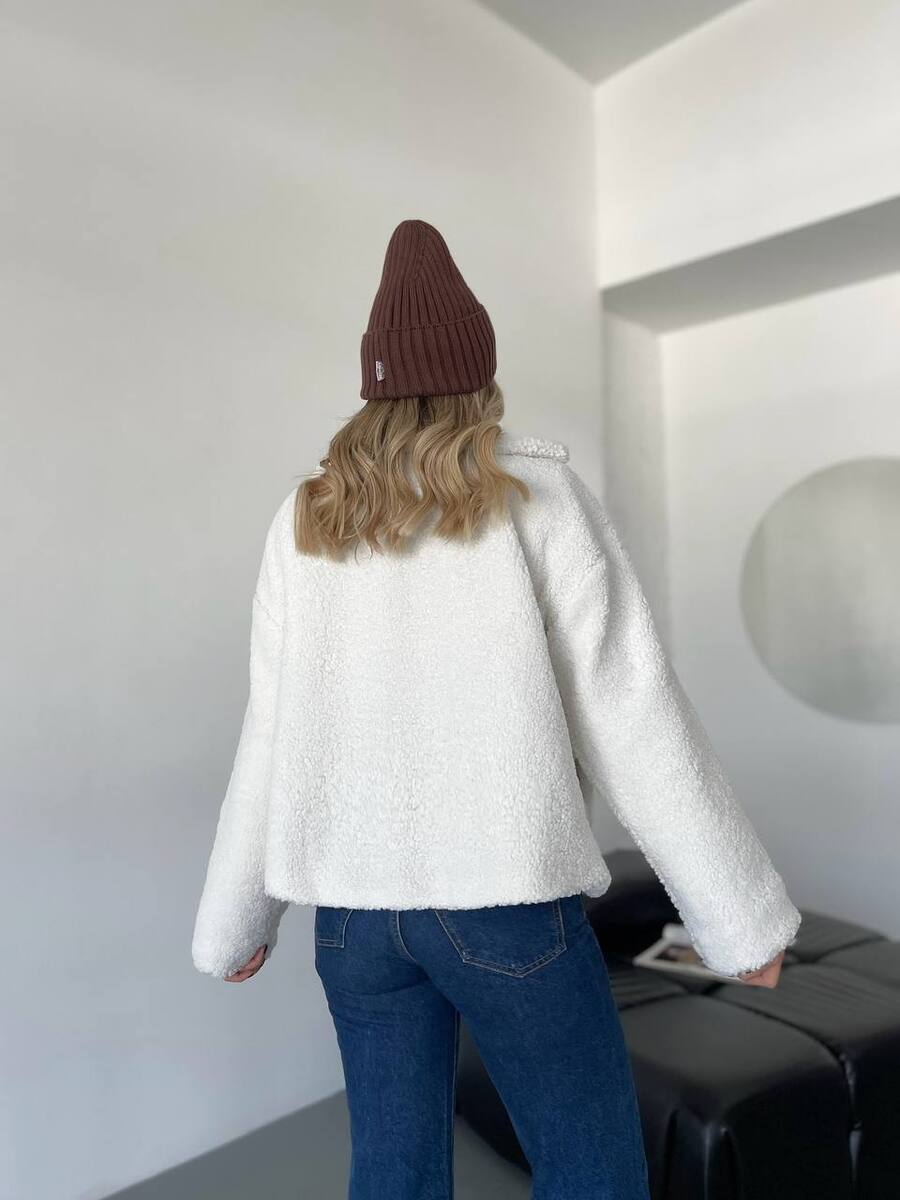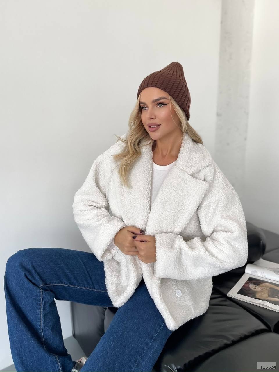 Виконана з щільного теплого хутра Тедді на підкладці — дарує комфорт і тепло навіть у прохолодну погоду. Вільний силует та спущена лінія плеча створюють стильний oversize-ефект, який легко поєднується з джинсами, сукнями чи трикотажними костюмами.