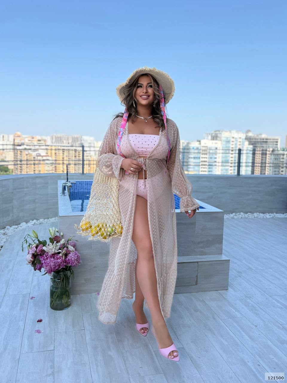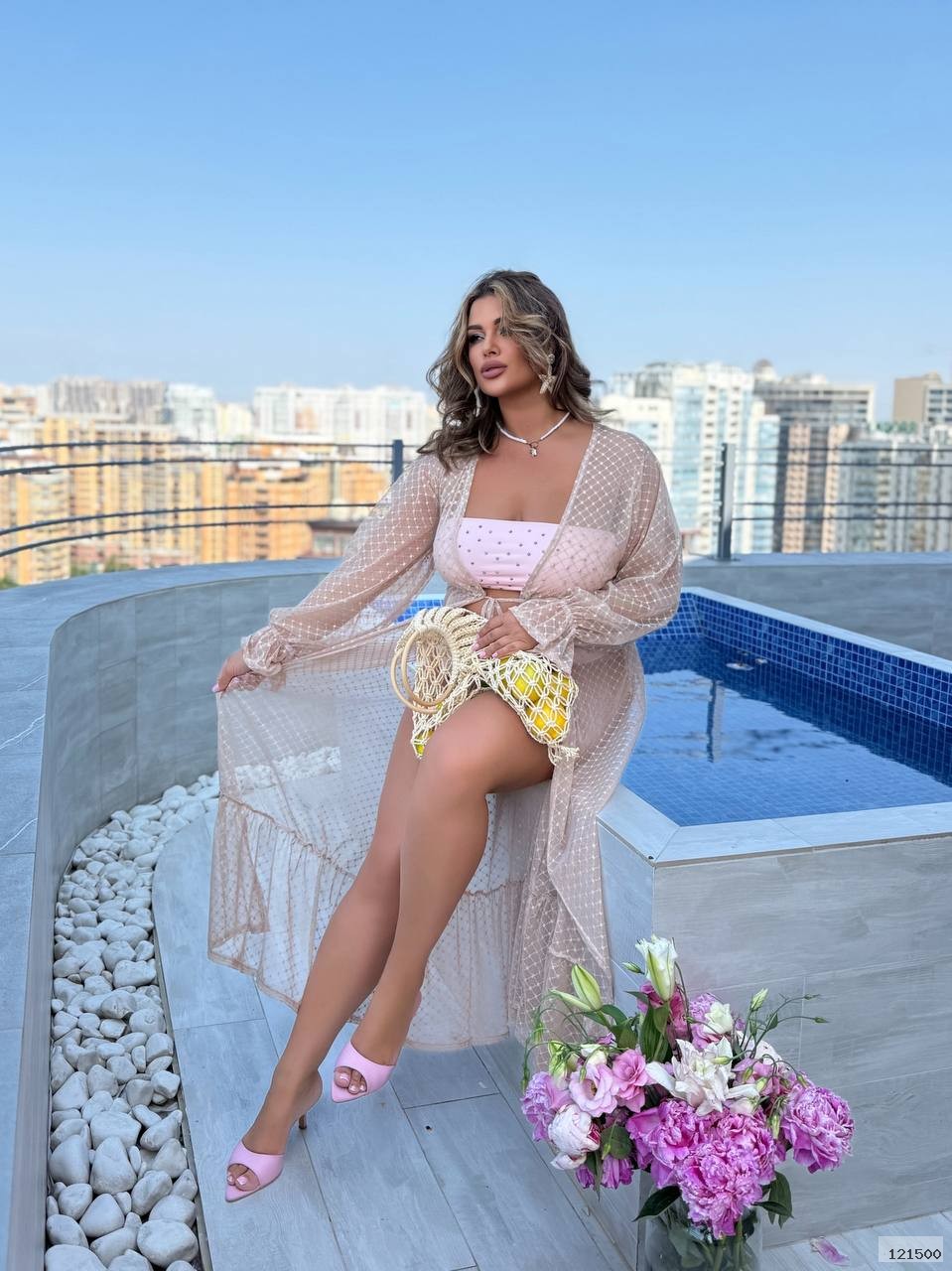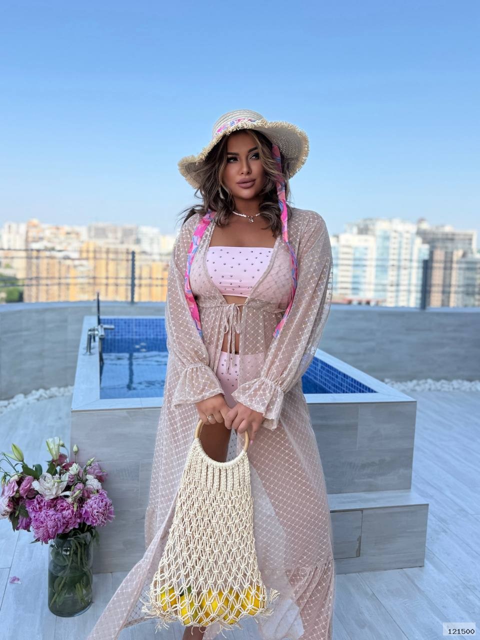 Легке довге парео з м’якої флокованої сітки з візерунком,що зав’язується спереду й елегантно підкреслює ваш пляжний образ