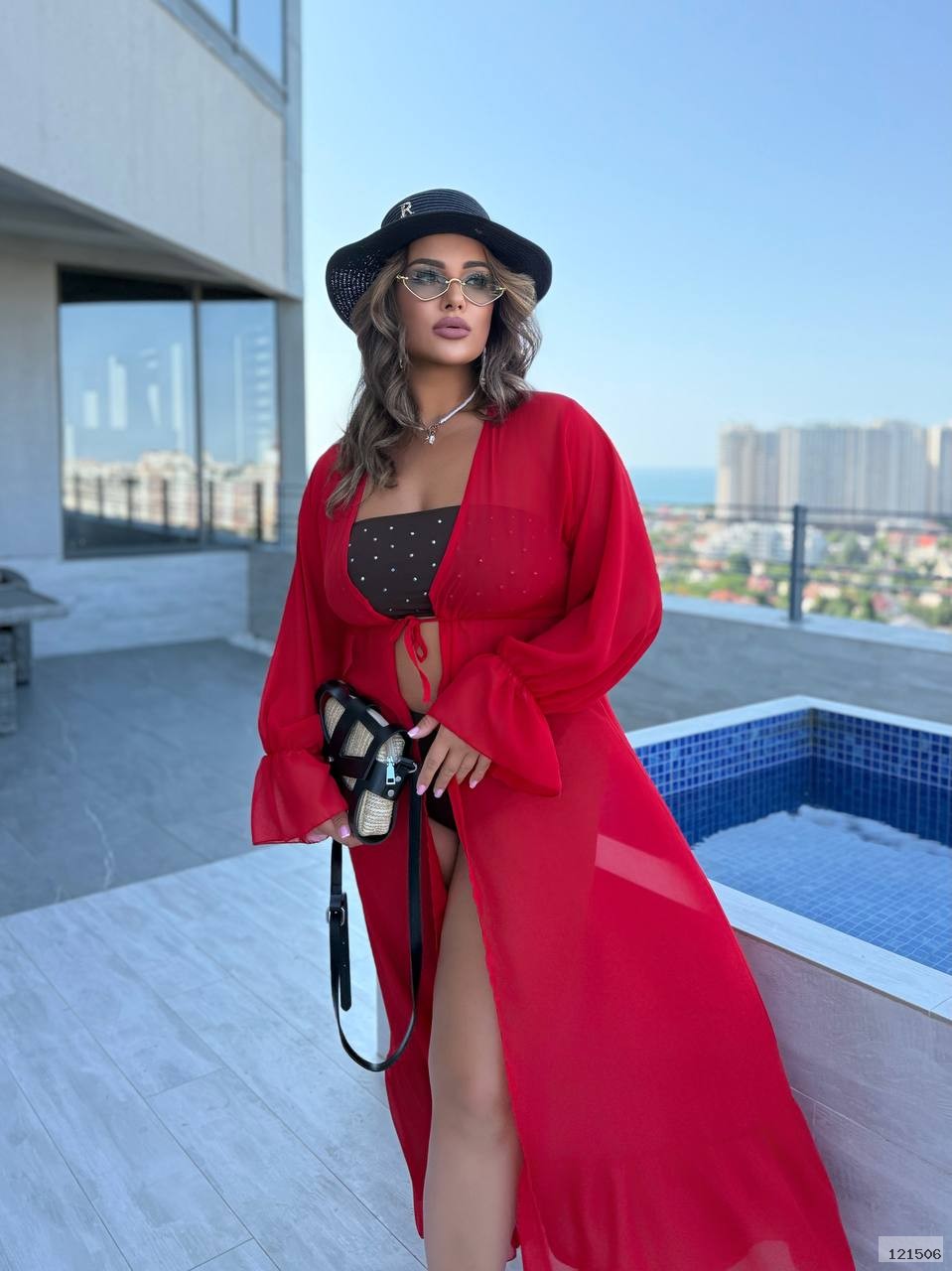 Легке довге парео з м’якого шифону,що зав’язується спереду й елегантно підкреслює ваш пляжний образ.