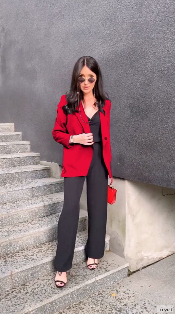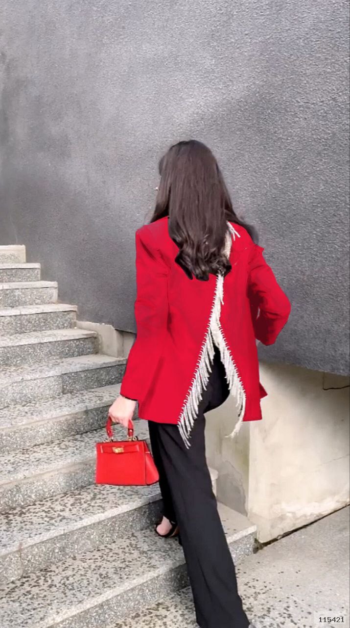 Піджак виготовлений с тканини високої якості, має робочий гудзик, позаду бахрома. Піджак без підкладу.