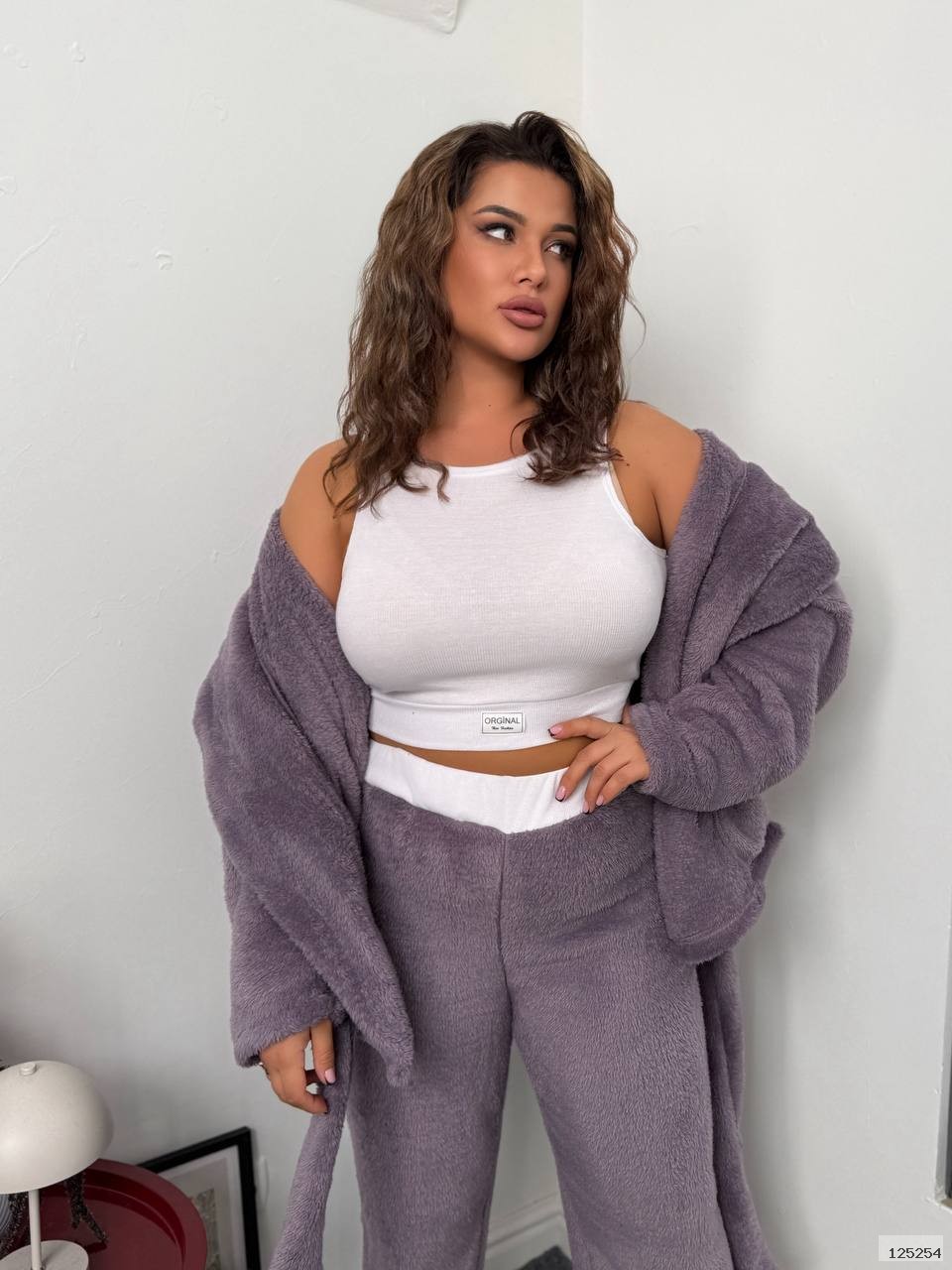 Теплий, мʼякий затишний домашній комплект. Приємна до тіла, дуже затишна мʼяка, двухстороння тканина. Топ Рубчик. Пояс в комплекті