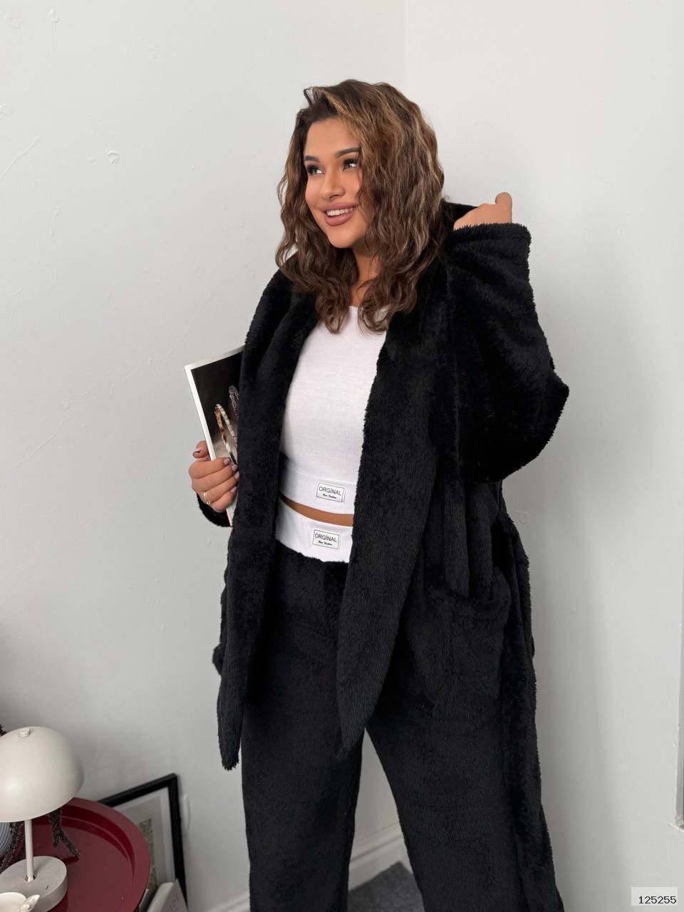 Теплий, мʼякий затишний домашній комплект. Приємна до тіла, дуже затишна мʼяка, двухстороння тканина. Топ Рубчик. Пояс в комплекті