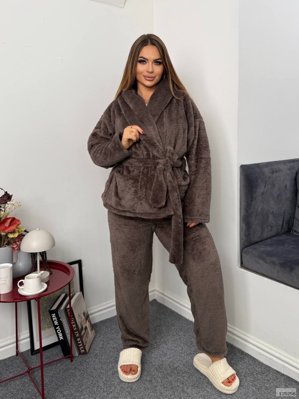 Теплий, мʼякий затишний домашній комплект. Приємна до тіла, дуже затишна мʼяка, двухстороння тканина. Топ Рубчик. Пояс в комплекті