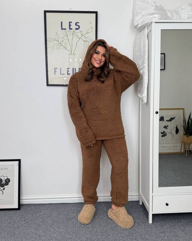 Затишна піжама,що складається з худі з капюшоном та штанів з еластичним поясом і шнурком.