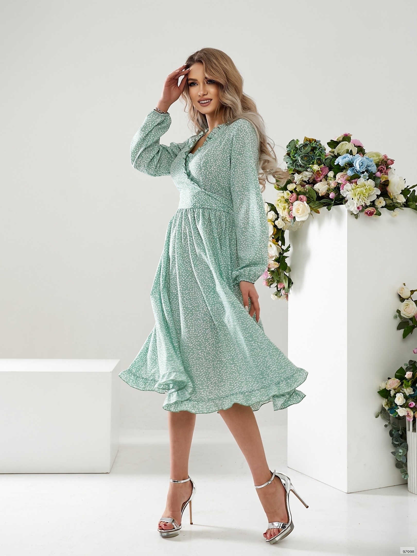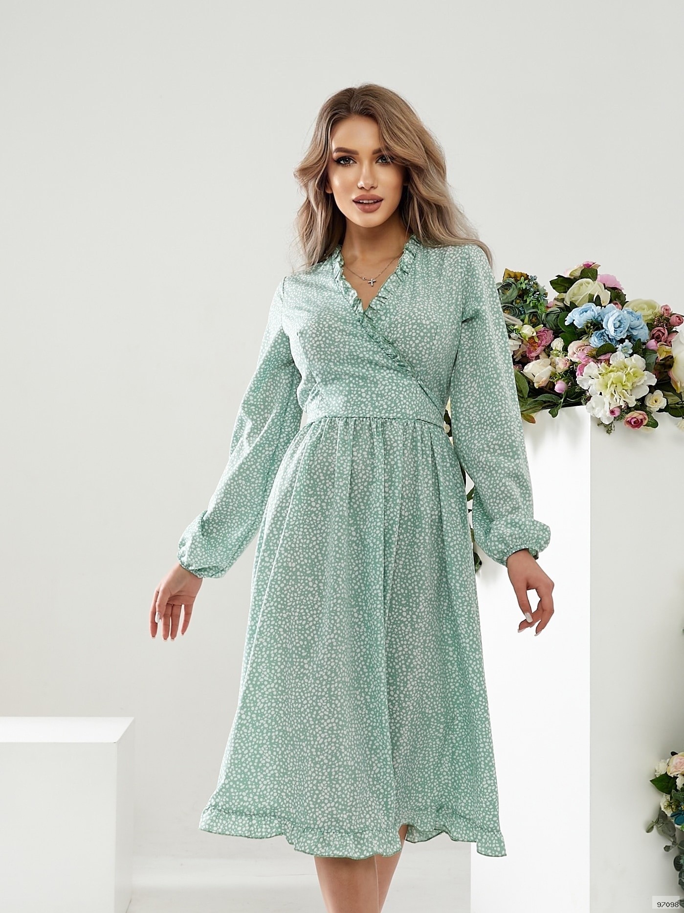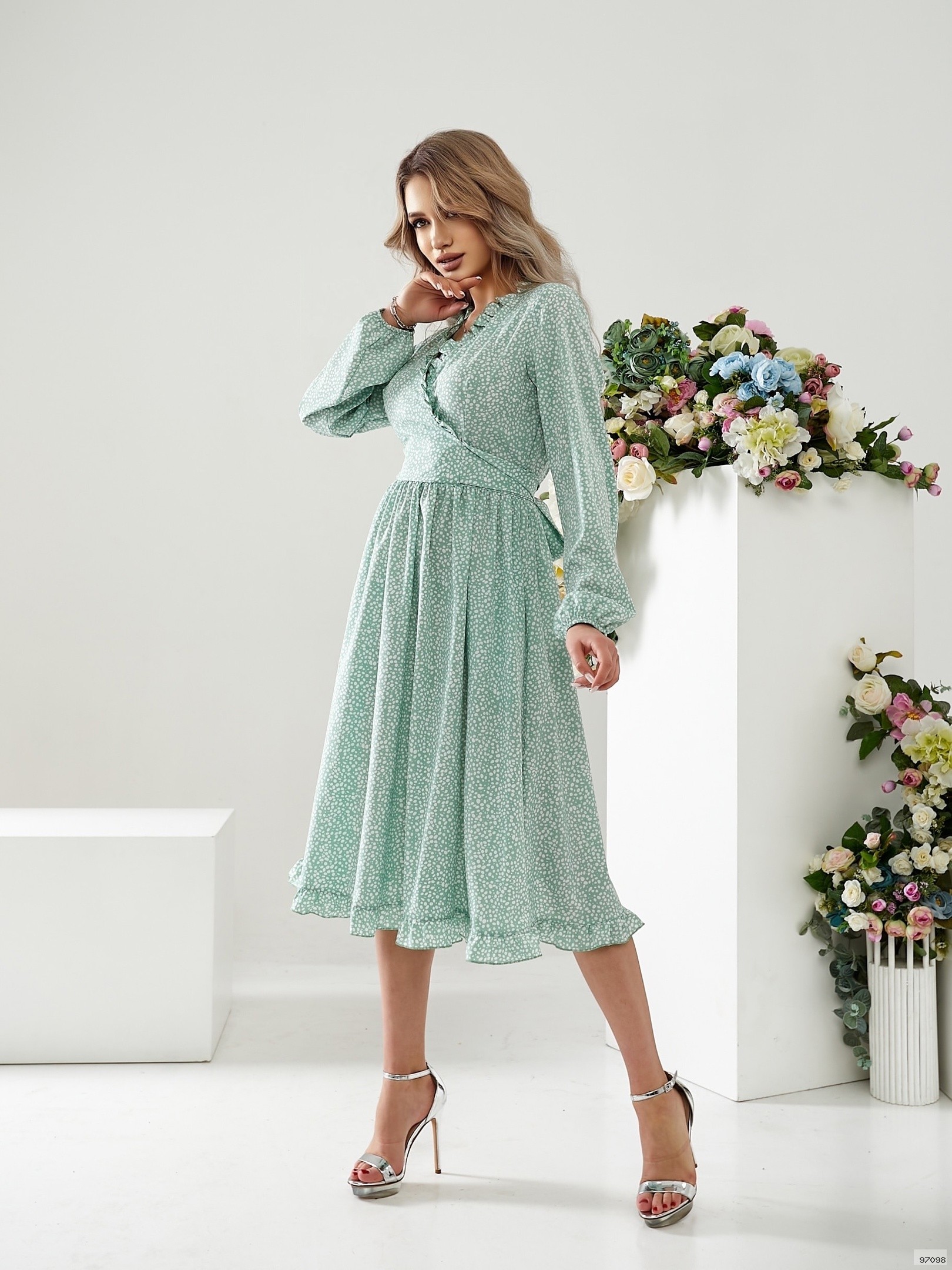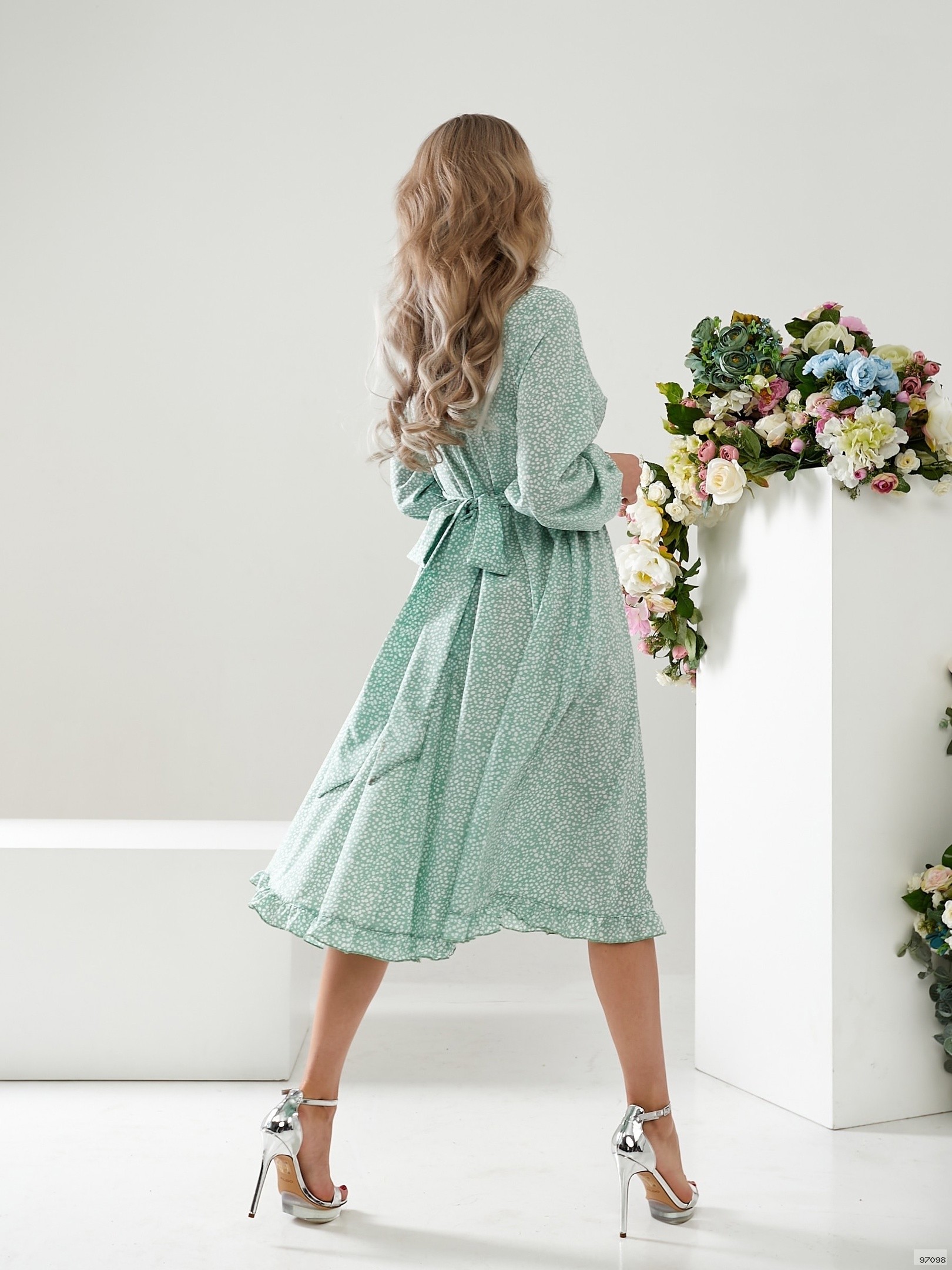 | Дополнительная информация: | верх платья - имитация запаха, по бокам карманы, пояс вшит платье и по спинке потайная змейка |