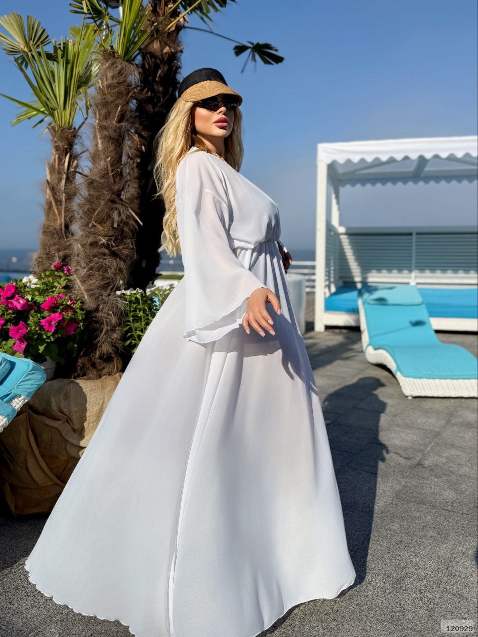 Туніка довга в підлогу, Спідниця з довгими широкими рукавами, талія на гумці, зав'язка попереду. пояс у комплекті.