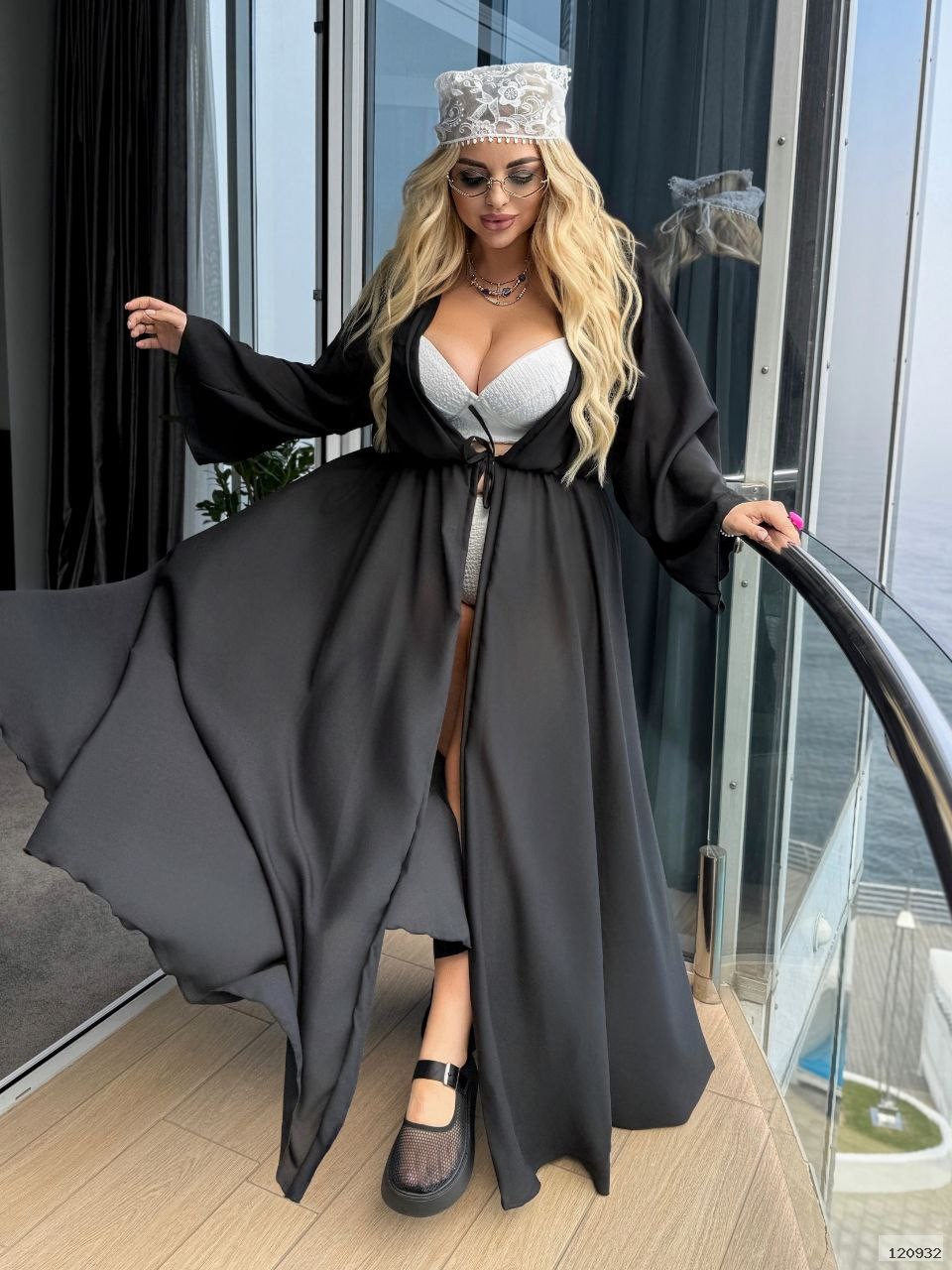 Туніка довга в підлогу, Спідниця з довгими широкими рукавами, талія на гумці, зав'язка попереду. пояс у комплекті.