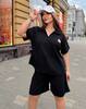 Стильний комфортний костюм з шортами з трикотажу еластан : футболка поло у стилі оверсайз з акс + шорти з високою посадкою з кішенями у бічних швах, з куліскою на поясі