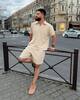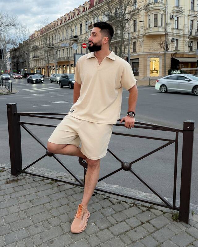 Стильний комфортний костюм з шортами з трикотажу еластан : футболка поло у стилі оверсайз з акс + шорти з високою посадкою з кішенями у бічних швах, з куліскою на поясі